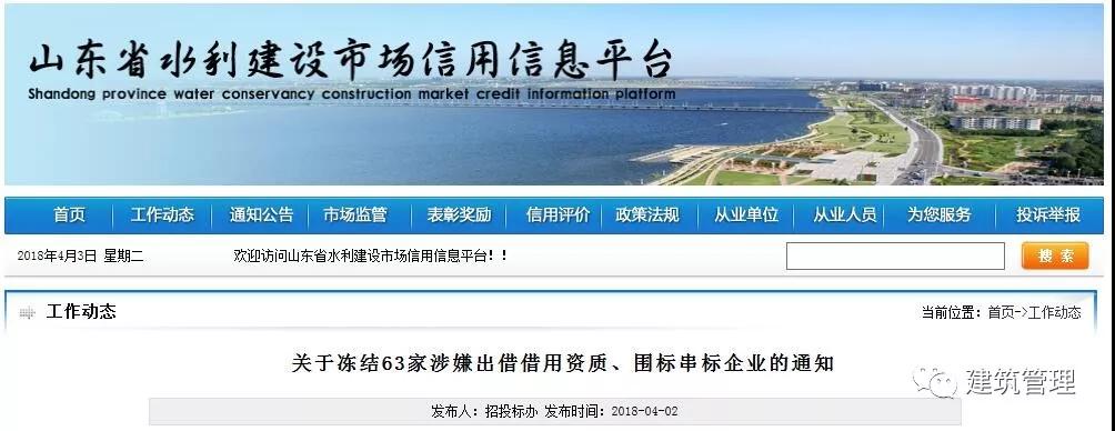 近日,山東省住建廳發(fā)現(xiàn)63家企業(yè)在水利建設(shè)市場招標(biāo)投標(biāo)活動中涉嫌出借借用資質(zhì)、圍標(biāo)串標(biāo)。